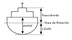 Francobordo: distancia vertical desde la línea de flotación en carga máxima y la cubierta estanca superior.