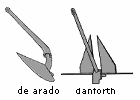Ancla: instrumento pesado y fuerte, en forma de arpón o anzuelo doble, que unido al extremo de un cabo, cadena o cable firme a la embarcación y arrojado al agua, sujeta la embarcación al fondo.