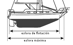 Eslora máxima: longitud de la embarcación. Es la distancia medida paralelamente a la línea de agua de diseño, entre dos planos perpendiculares a la línea de crujía, uno a proa y otro a popa, sin considerar elementos no estructurales del casco.