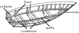 Cuadernas: costillas del casco que partiendo de la quilla definen la forma de los costados.