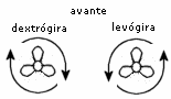 Levógira: en marcha avante gira en sentido contrario a las aguas del reloj (izquierda).