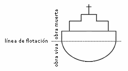 Obra viva: es la parte del casco por debajo de la línea de flotación (sinónimo: carena).